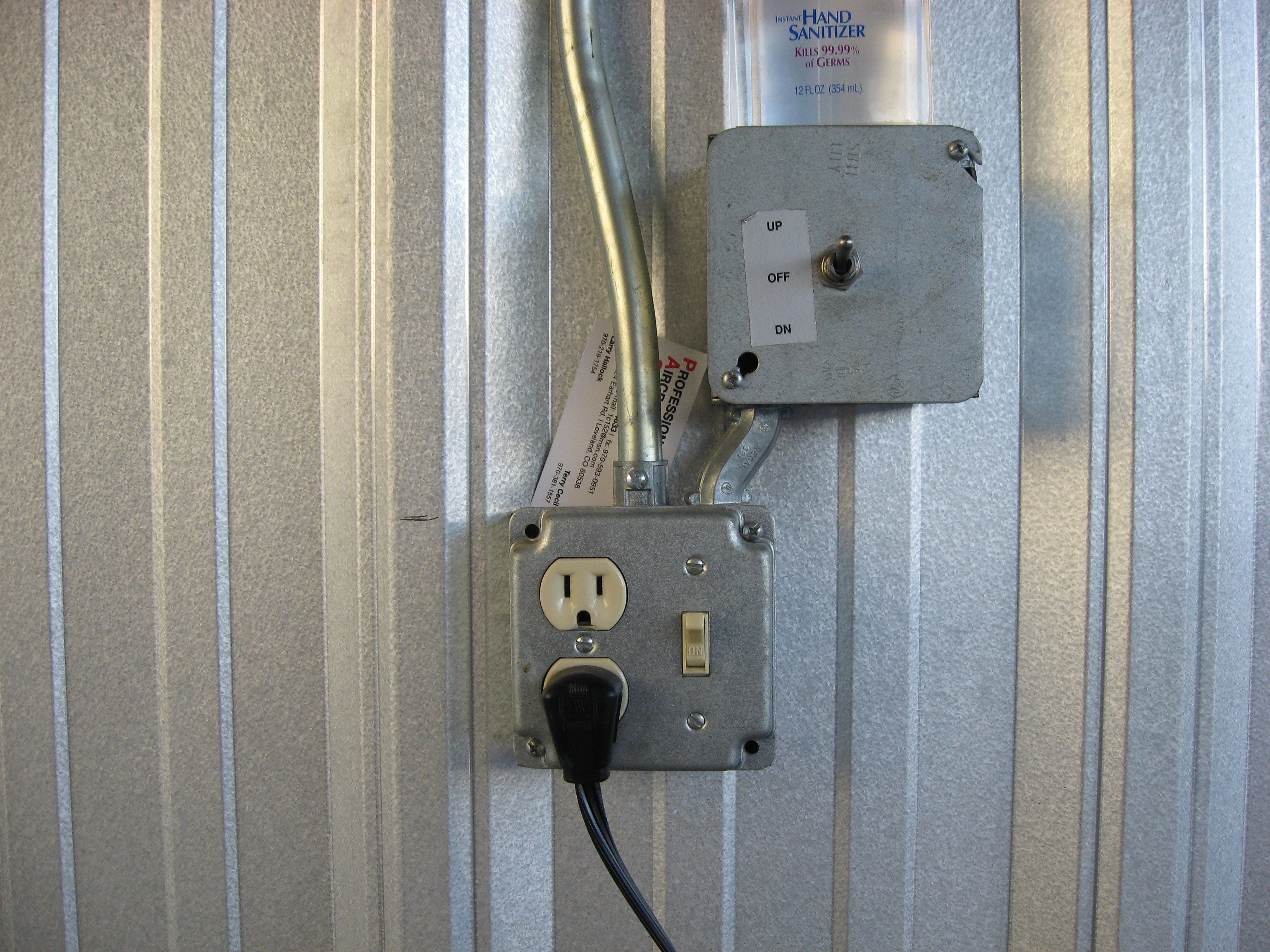 Electrical is minimal. 110VAC, overhead lights, hangar door switch. (04/12)