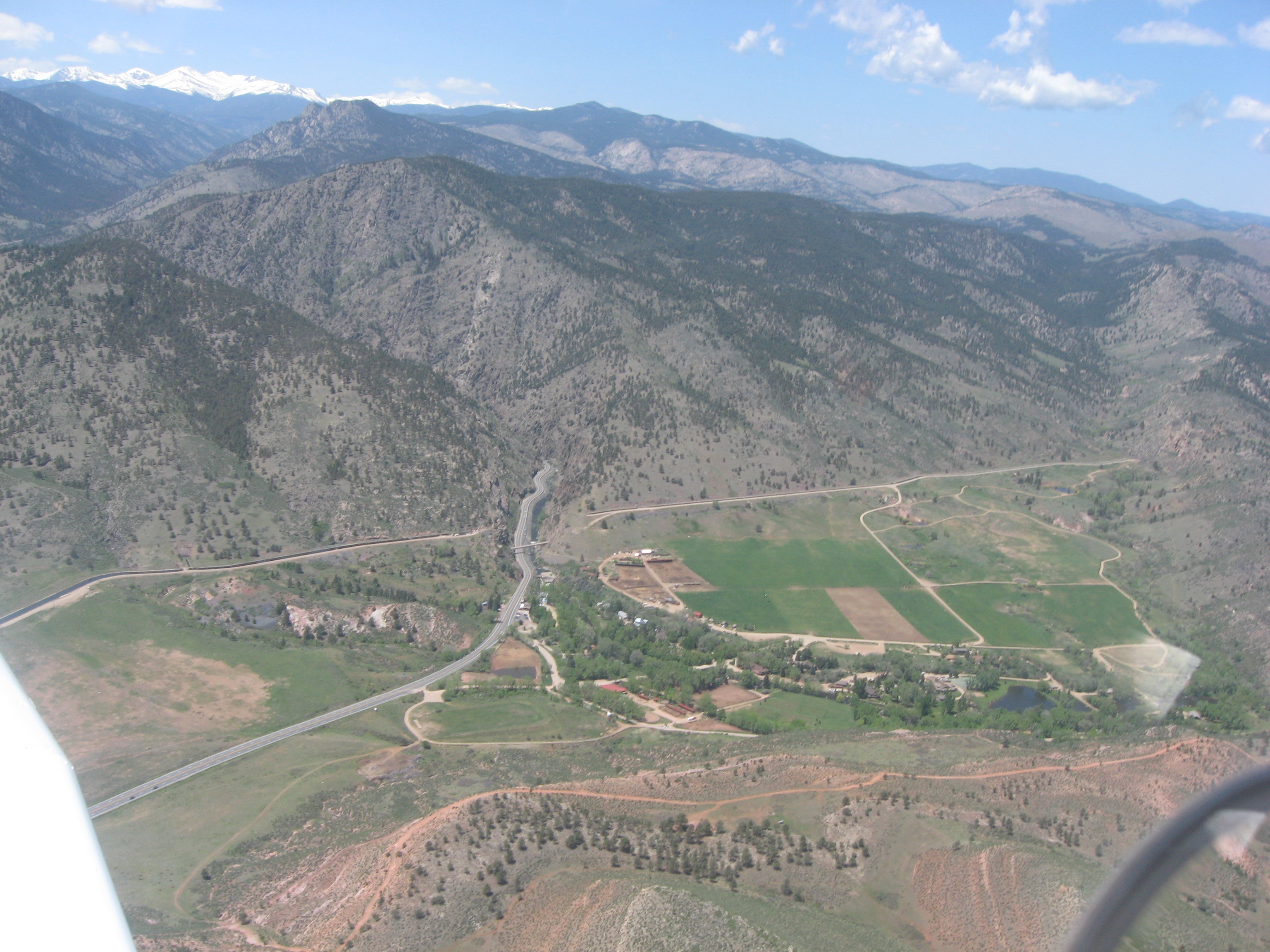 Ditch crosses US34, looking west toward Estes Park, Colorado... note the siphon pipe just above the road. (76/79)