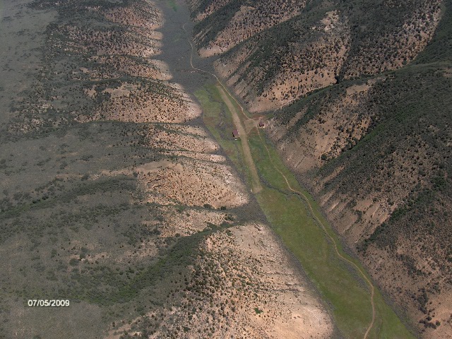 Bishop Ranch Airport, looking N. Note hangar west of midfield, lodge east of midfield. (03/10)