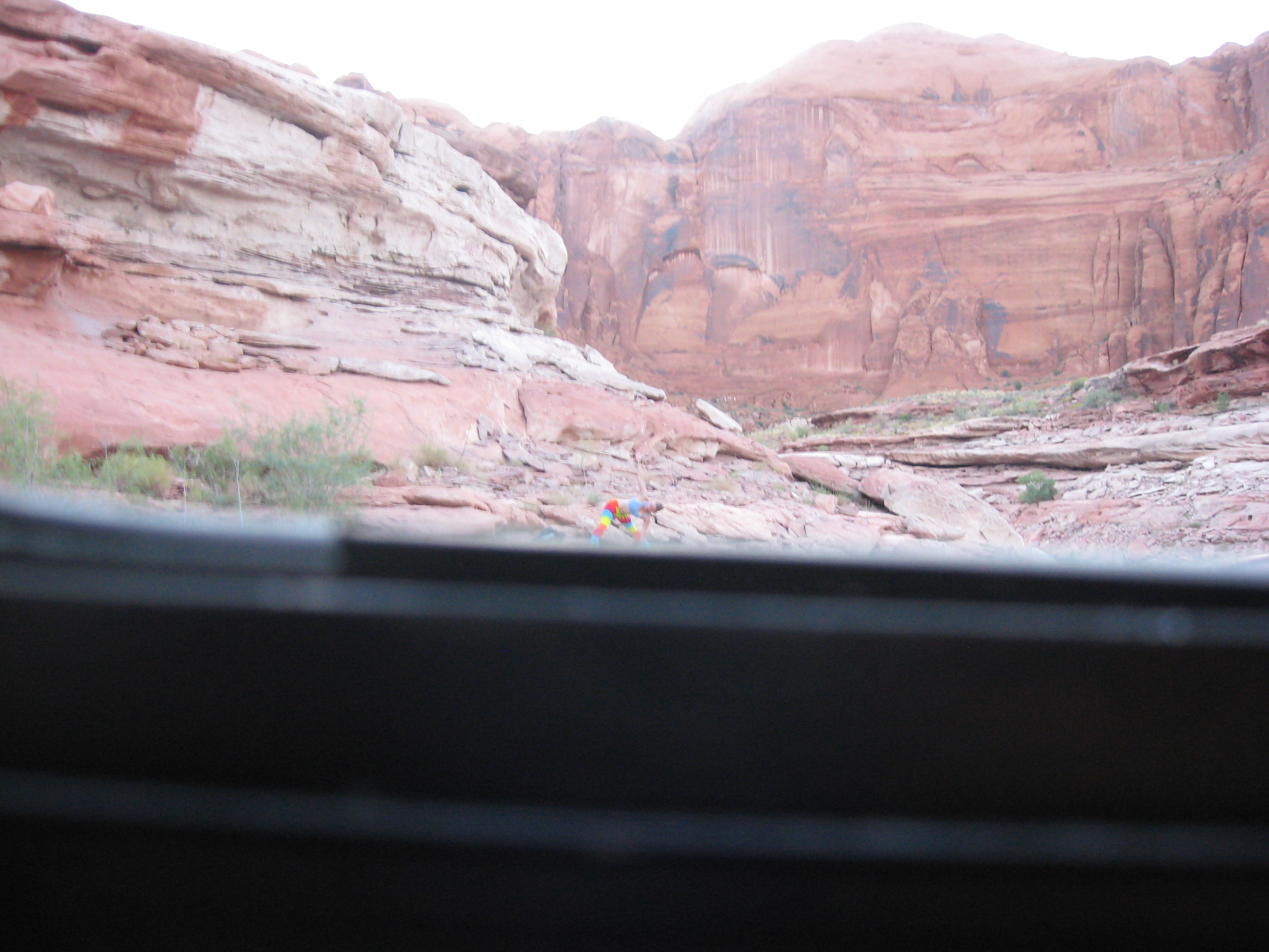 Moriah doing morning yoga on canyon wall. (14/32)