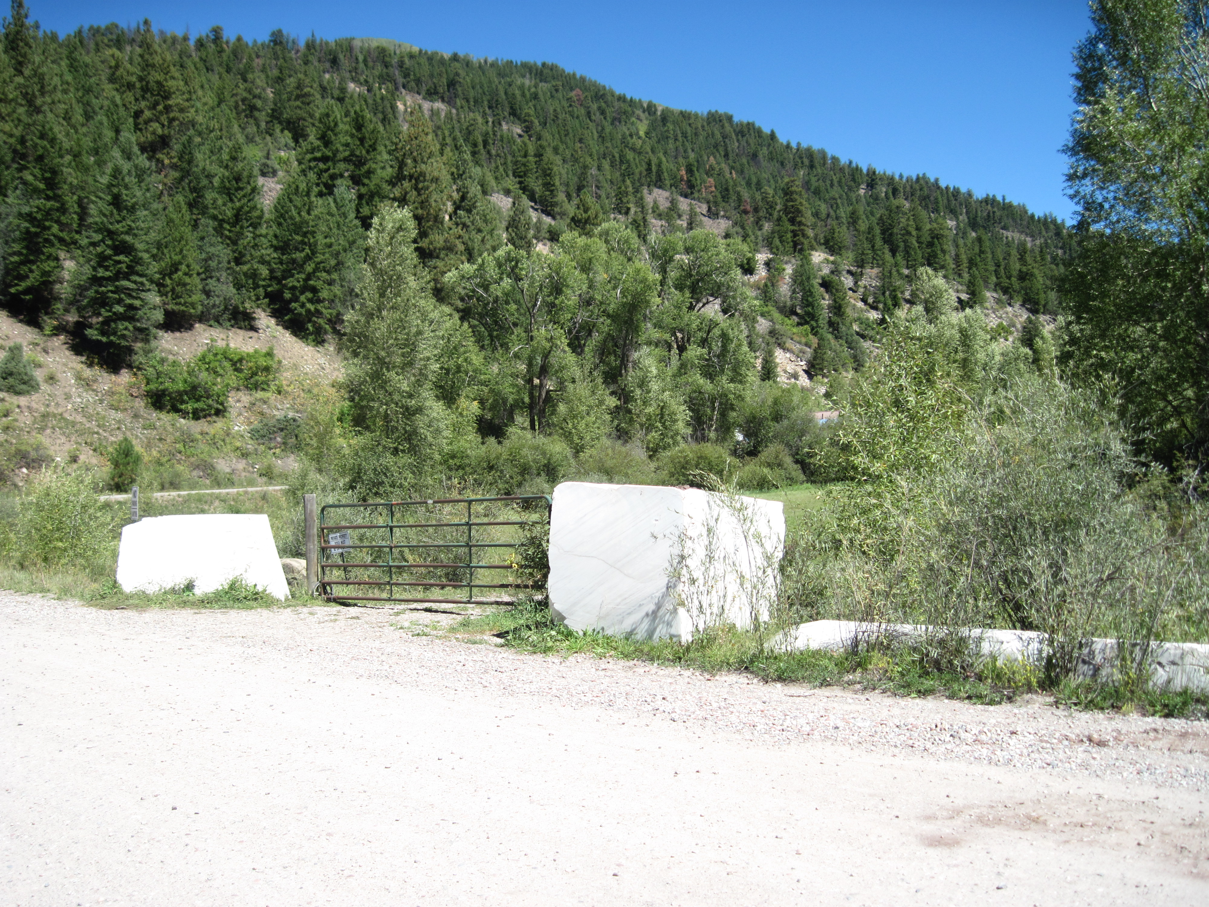 Marble Airport access road gate from the berm. (070/192)