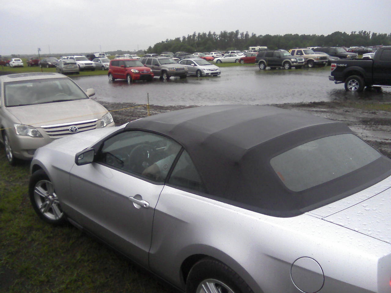 SNF parking lot after tornado and rain. Our Mustang. 20110331:1503 (053/109)