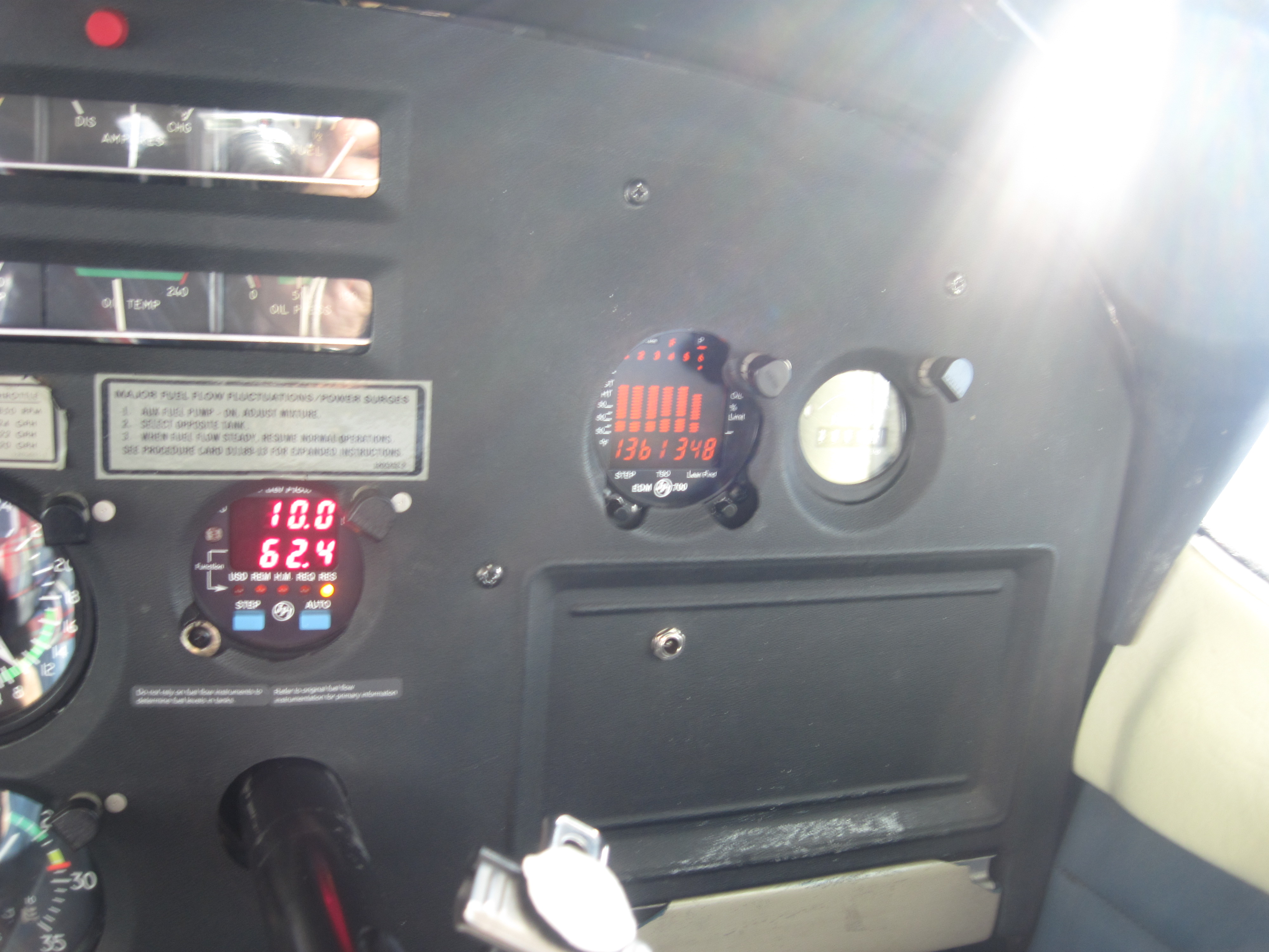 N9513G, C206, stabilized EGT and CHT at 12,500 MSL, 10.0 GPH. Love those GAMIjectors! 05/13/11 (042/155)