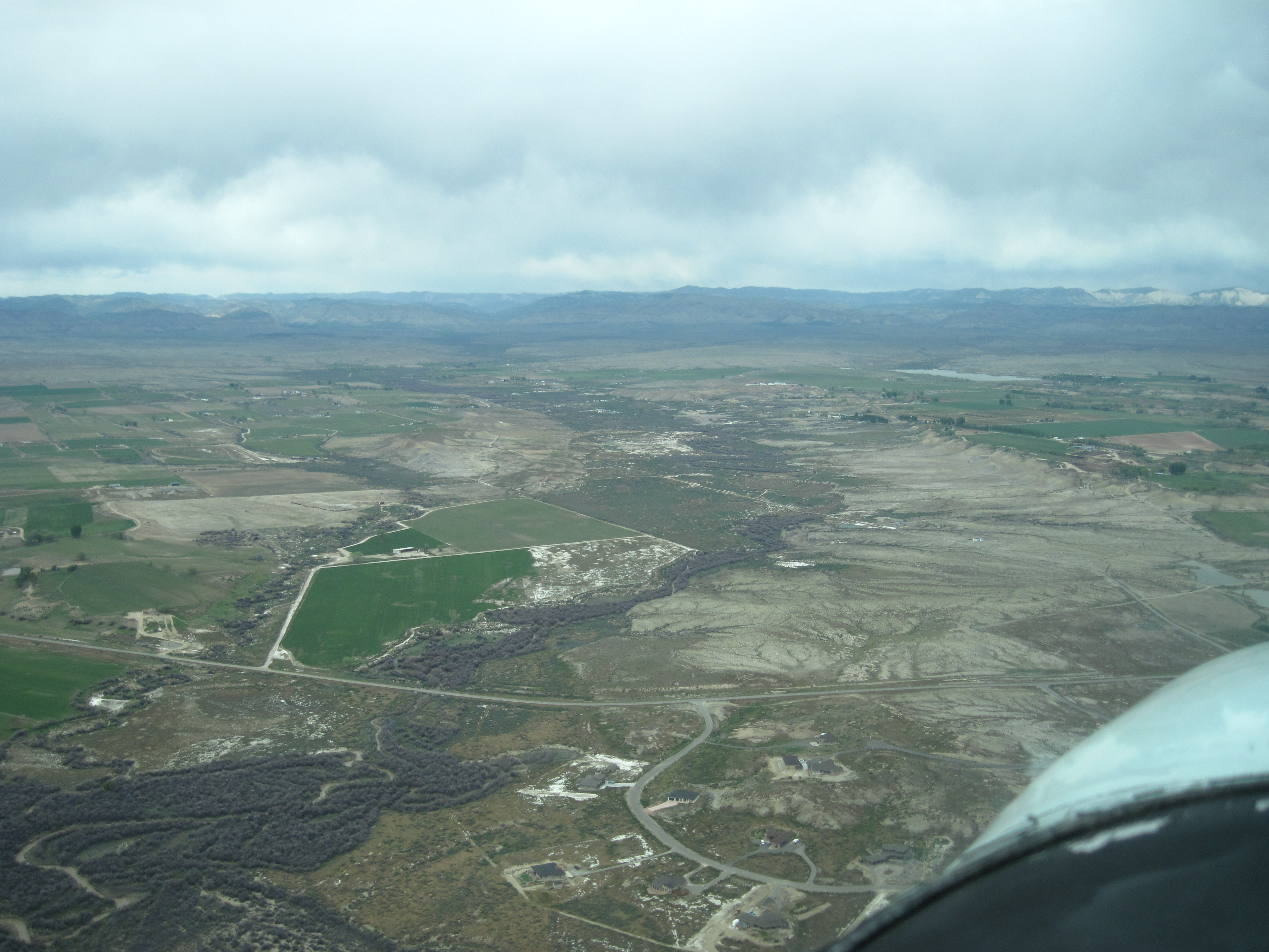 Mack Mesa Airport (C07), CO, is the white buildings left of the water. 05/14/11 (128/155)