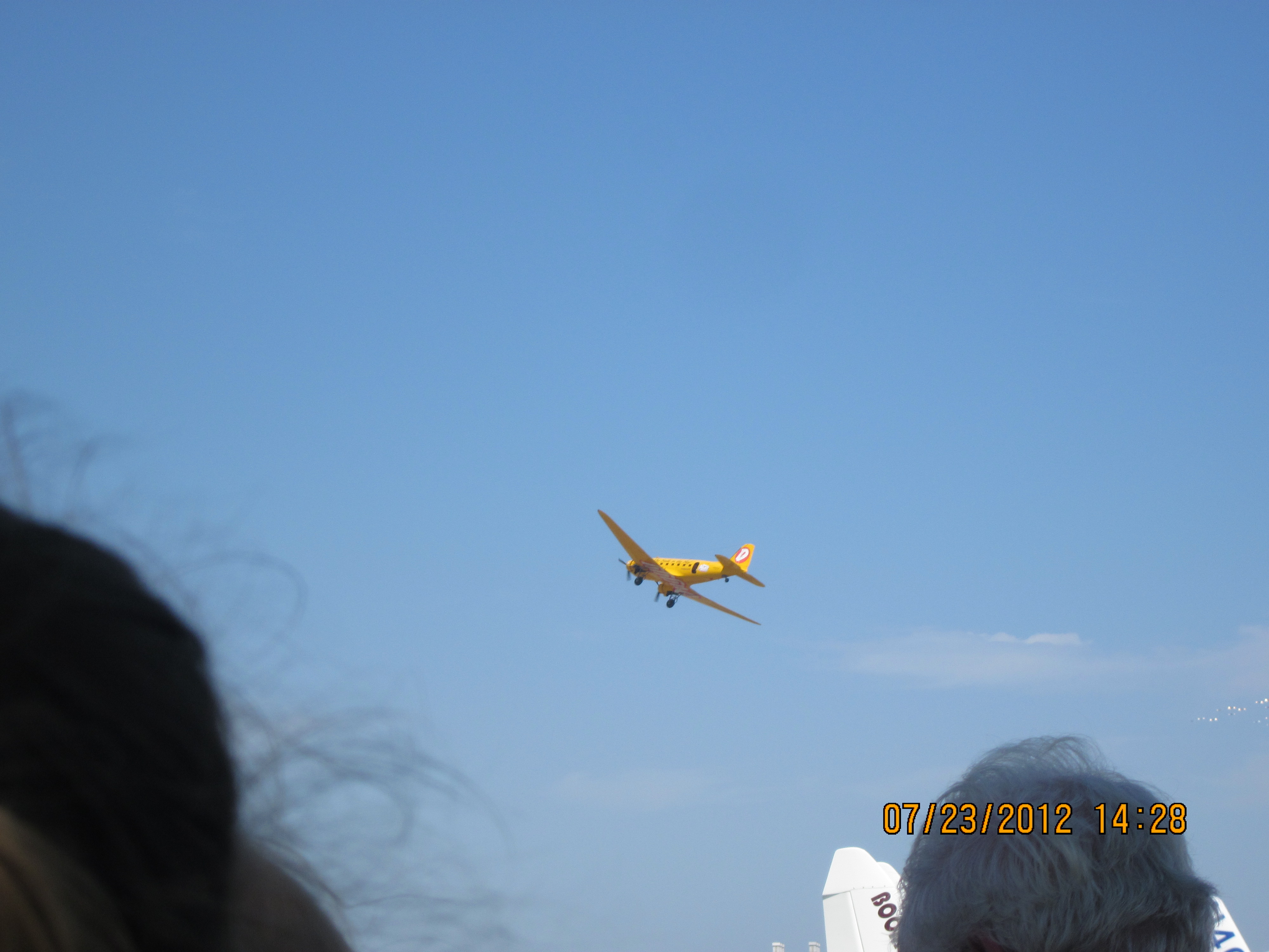 "Duggy, the Yellow DC-3, taking the flag jumpers aloft, 07/23/12 (018/139)