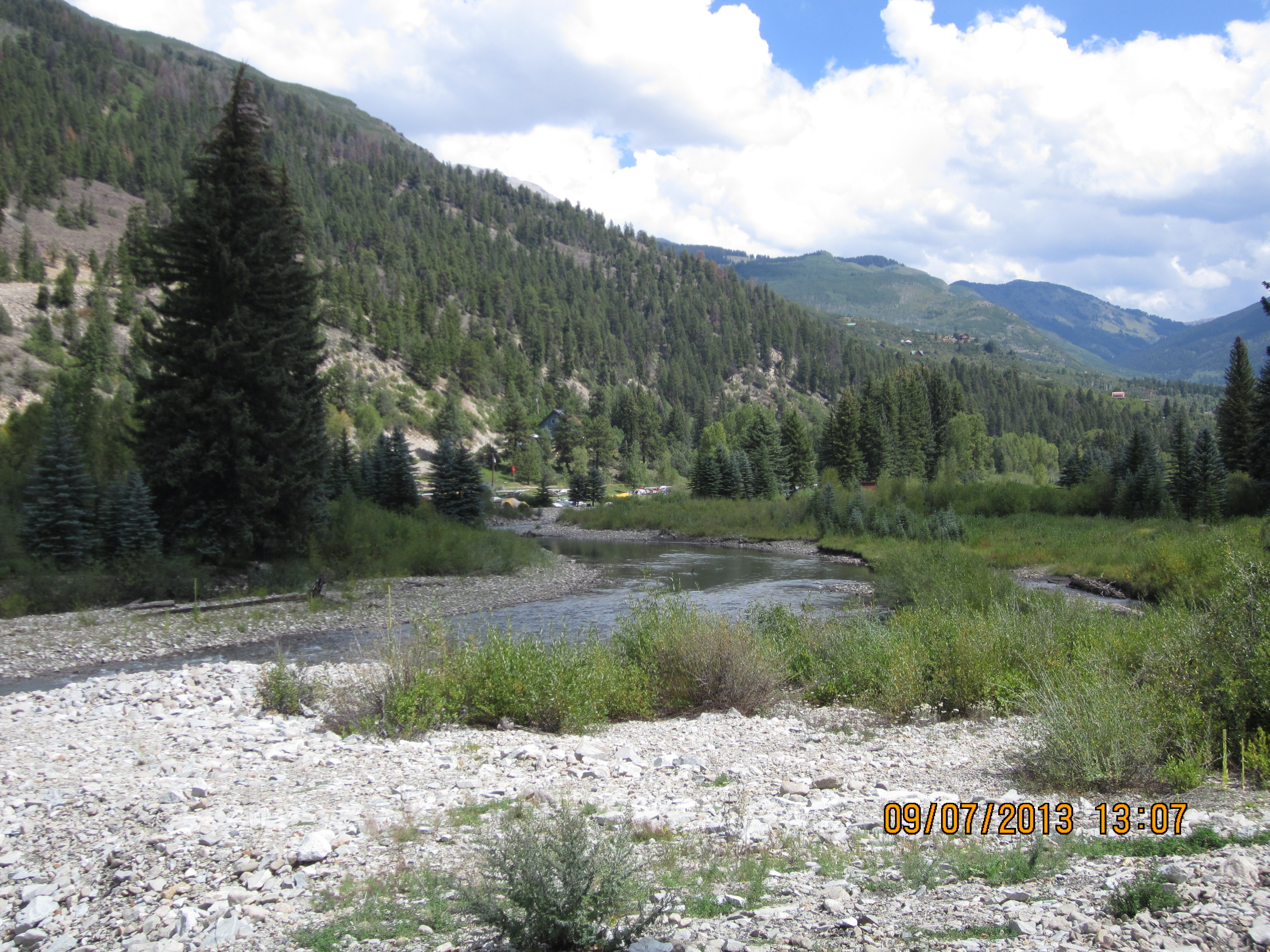 Looking NE across the Crystal River to Marble Airport, CO, 09/07/13. (23/41)