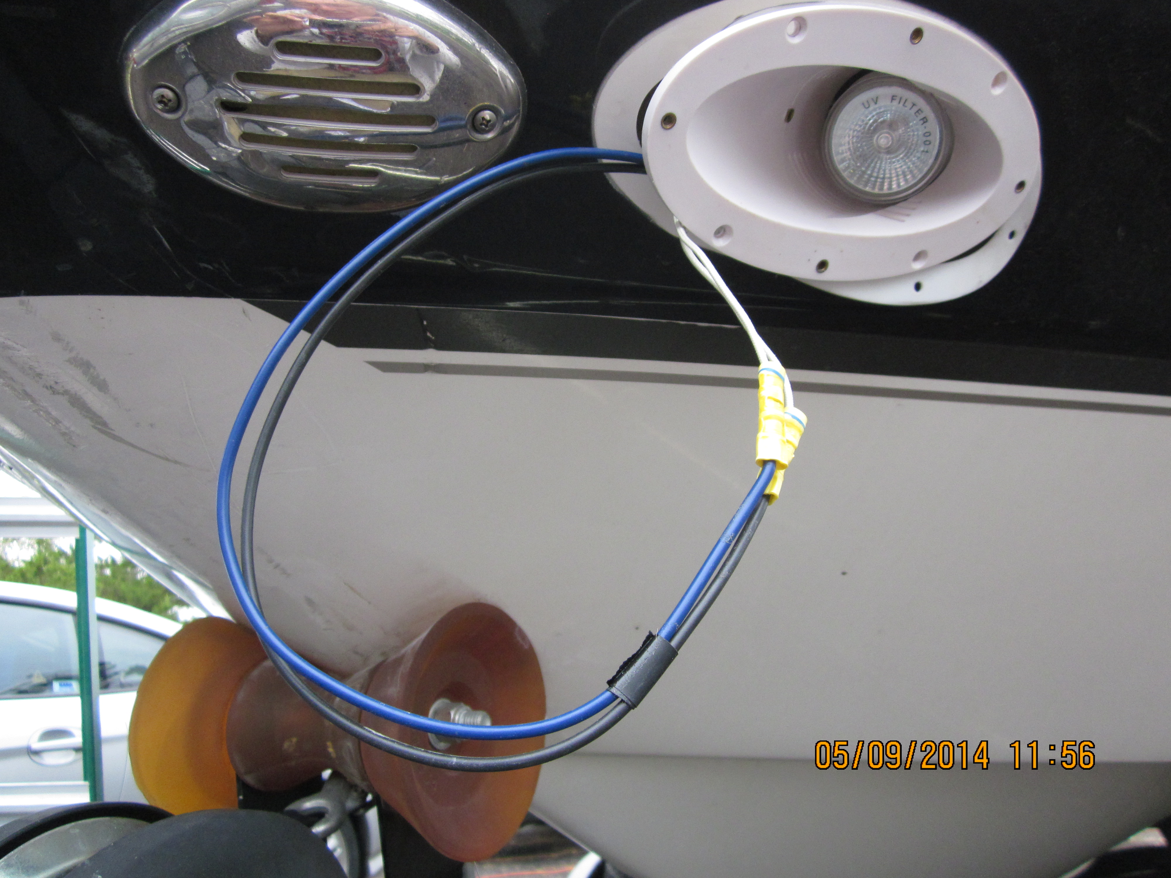 The docking lights were not working, so this picture is to verify that the blue and black wires are connected to the light. 05/09/14 (09/16)