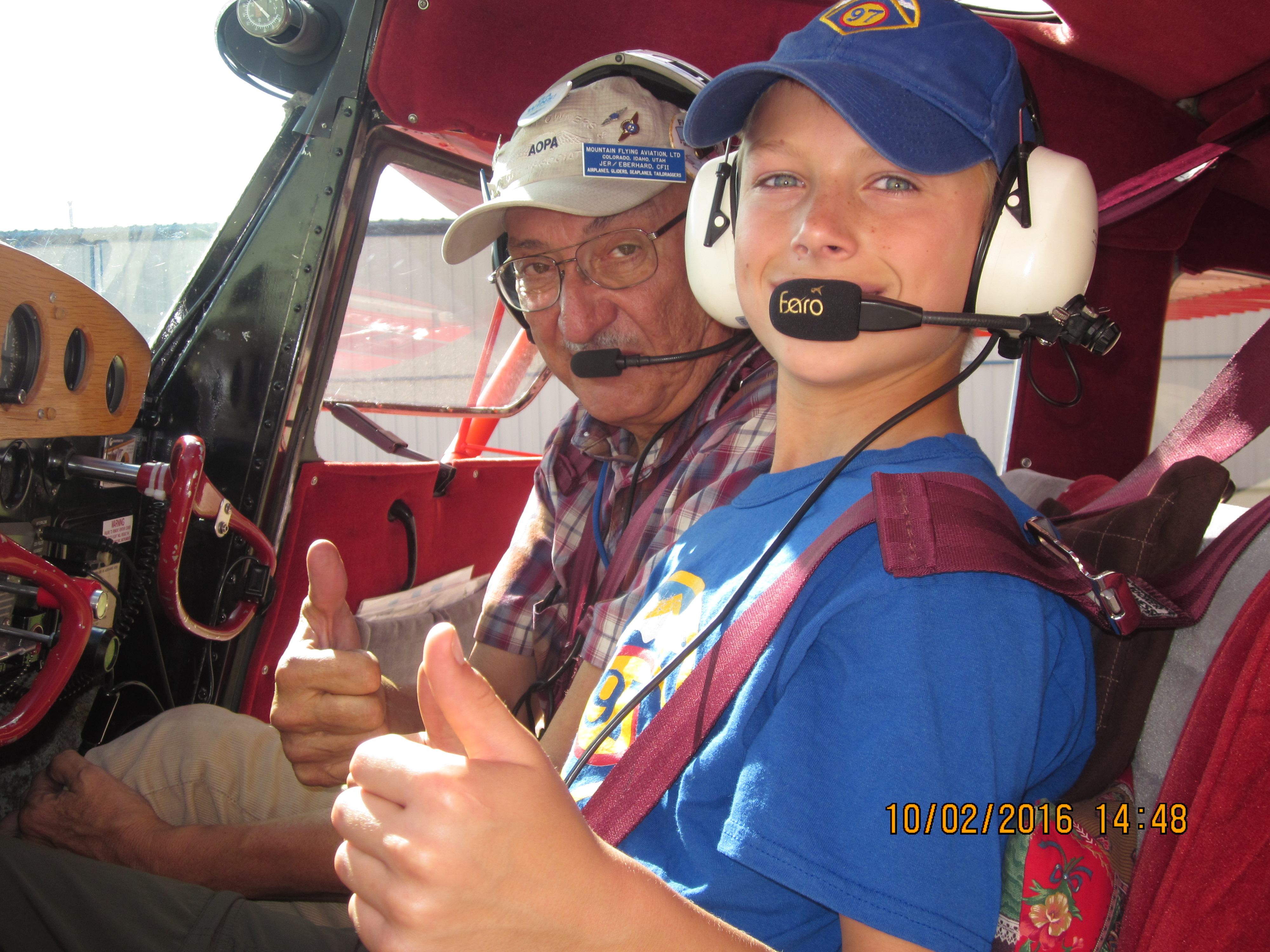 Caleb still grinning after his Young Eagle Flight with flight leader Jer, 2. (17/19)