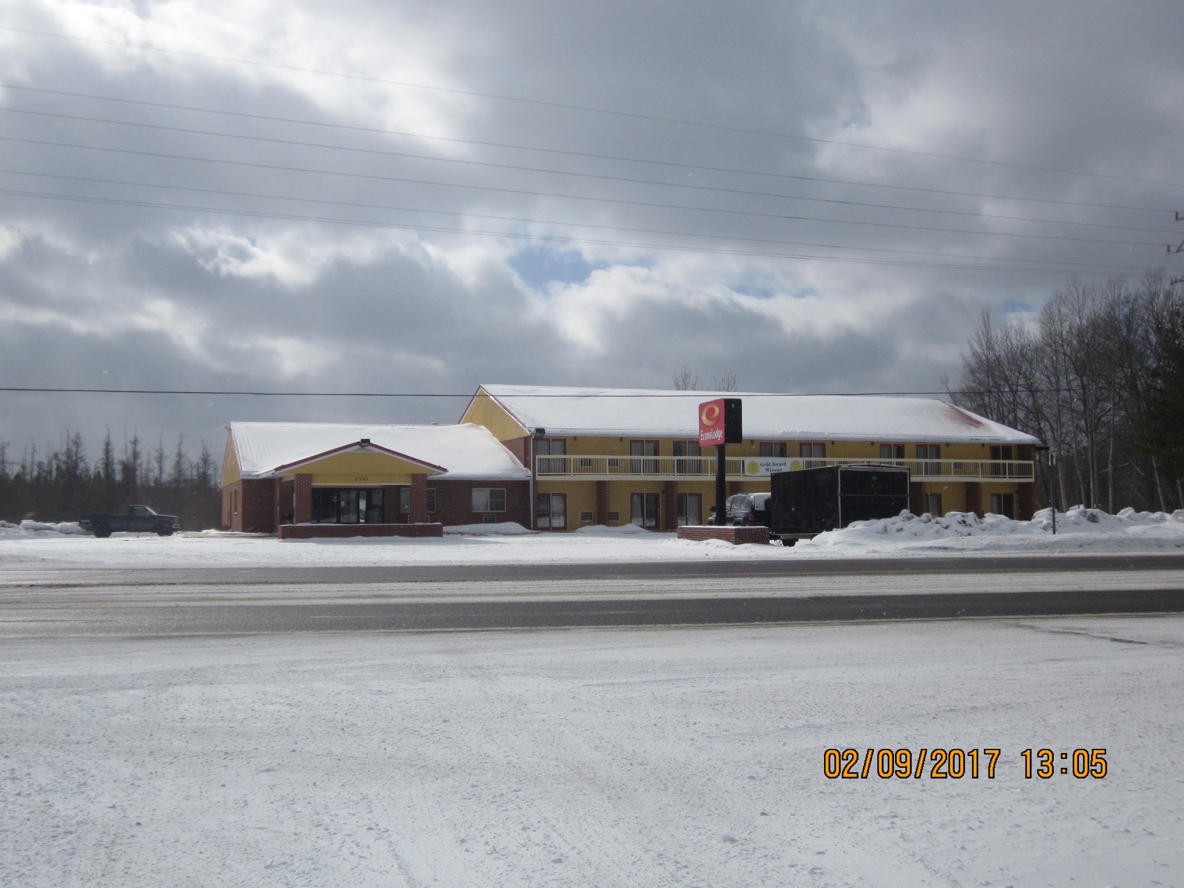EconoLodge Motel at Cadillac, w/snowmobile trailer, 02/09/17 (01/42)