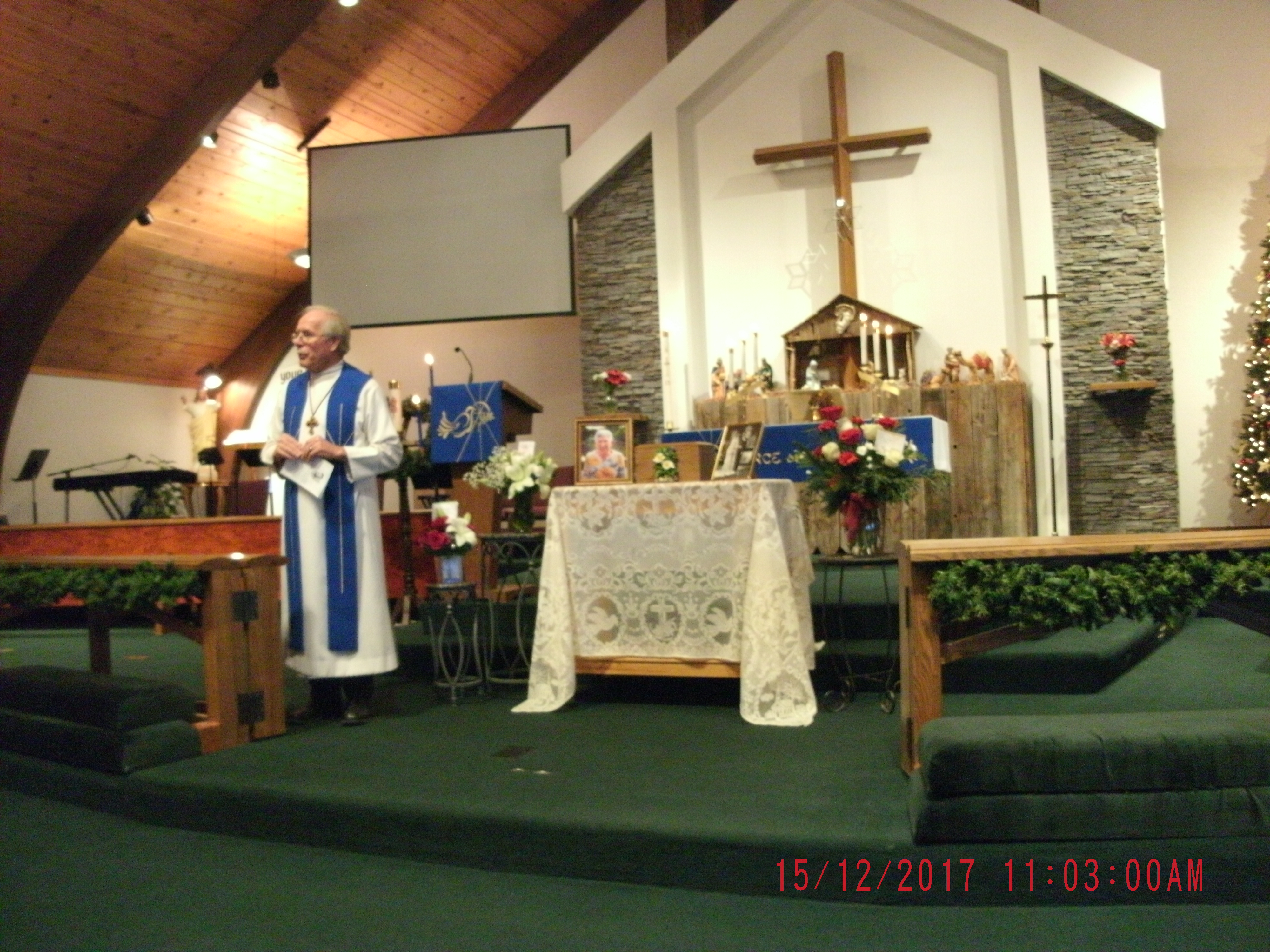 Pastor Greg Hafeman, addressing the congregation, 12/15/17 (09/40)