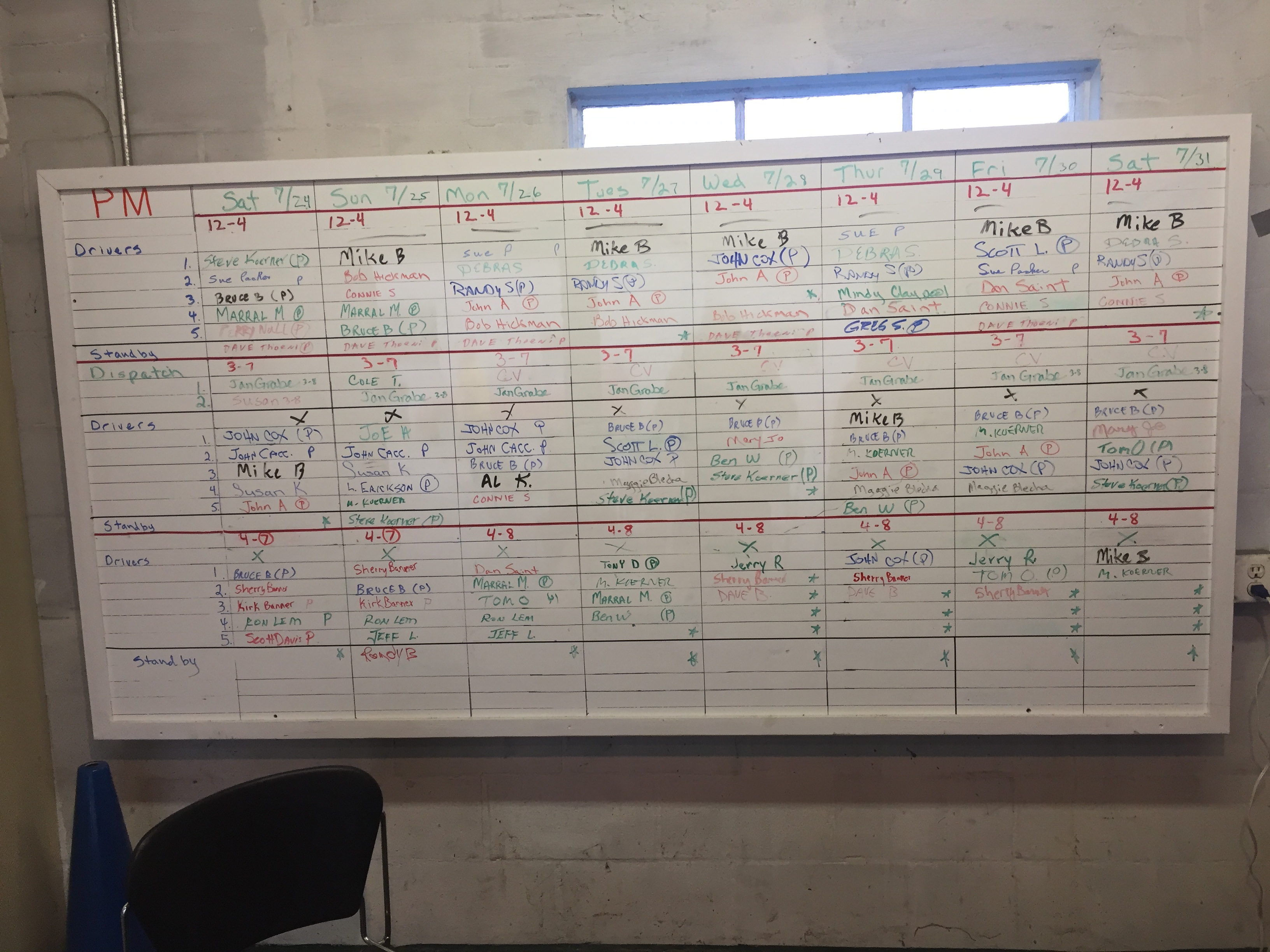 "Carts" volunteer board, golf cart drivers and dispatch afternoon/evening shift and names, 07/24/21 (16/73)