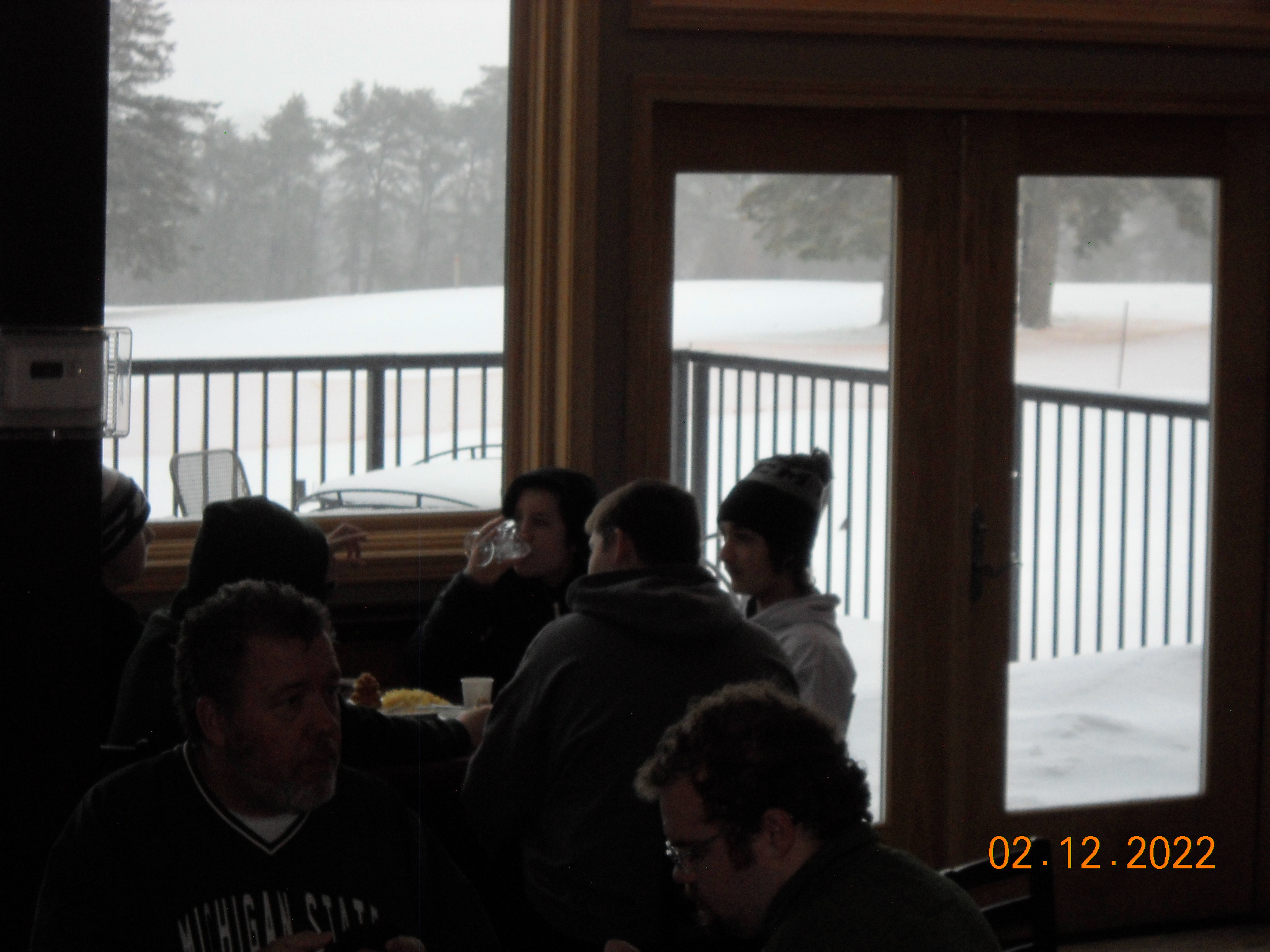 View out the window, snowing, breakfast at Evergreen Resorts, 02/12/22 (24/40)